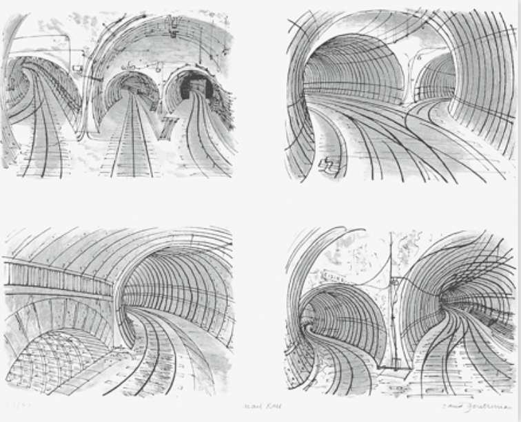 Starting Nov. 7, London’s Postal Museum will make available for purchase 50 limited-edition prints by British stamp designer David Gentleman. The prints are a block of four sketches of London’s underground Mail Rail tunnels.